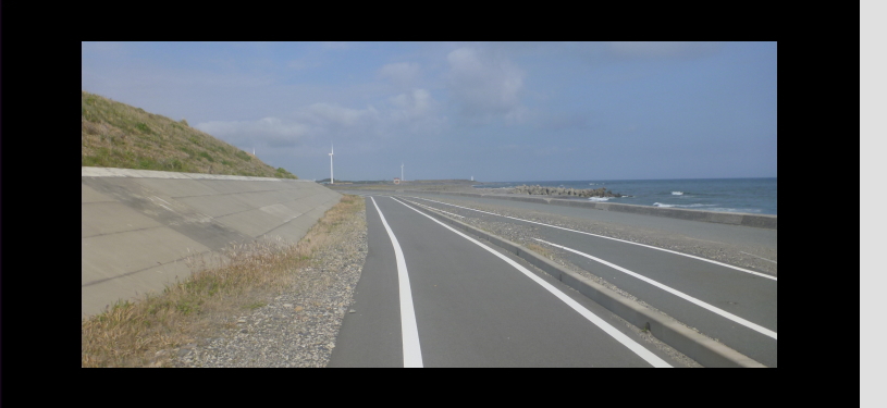 従来のサイクリングコース上に津波対策の防波堤を作っていて、迂回路を走る所がたくさん有ります。