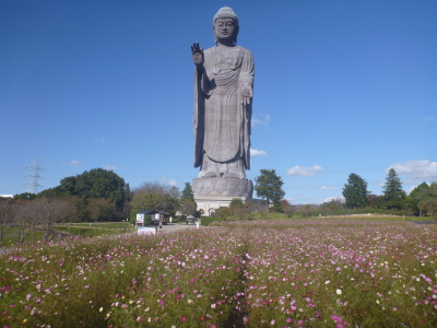 世界一大きな大仏です。大仏の胸の位置が展望室になっていて、良く晴れた日には富士山や東京のスカイツリーも見えるそうです。庭にはお花畑があり、春、夏、秋には季節の花を見ることができます。